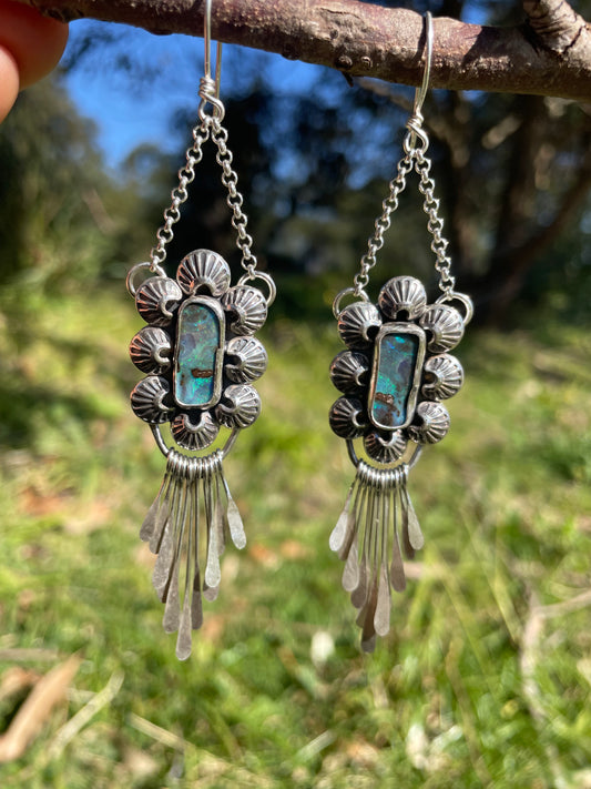 ~BLUE BOULDER OPAL FRINGE EARRINGS~