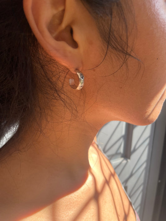 ~SONORAN TURQUOISE HAMMERED GUM LEAF EARRINGS~