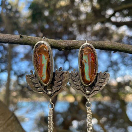 ~LEAF ORNAMENT EARRINGS~ Boulder opal