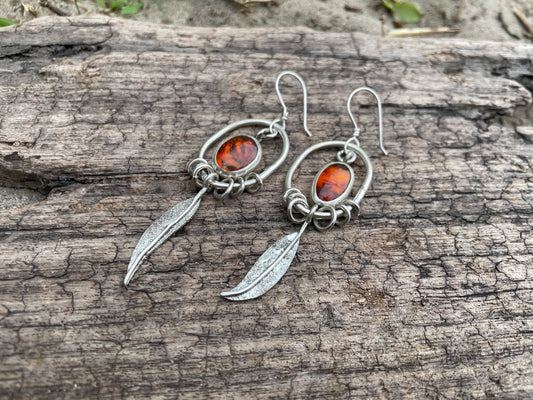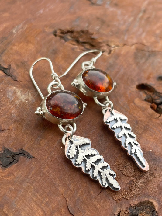 Sold out~BALTIC AMBER GUM LEAF EARRINGS~