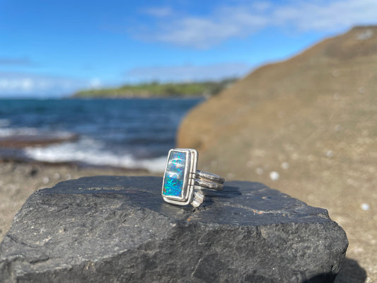~HAMMERED RING~ Blue Green Boulder opal (Size7.5, O1/2)