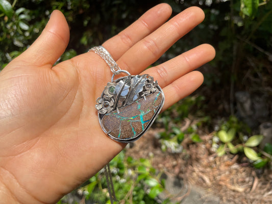 ~BOULDER OPAL + FERN + FLOWER STATEMENT PENDANT NECKLACE~