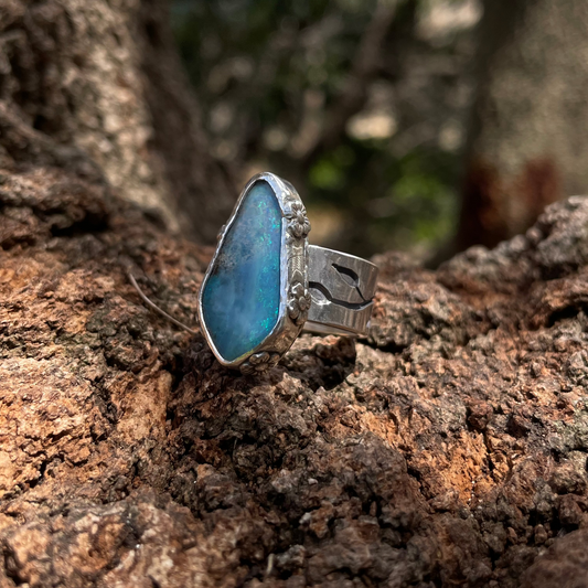 ~BLOOMING ~ Blue Boulder opal (Size7.25, O)