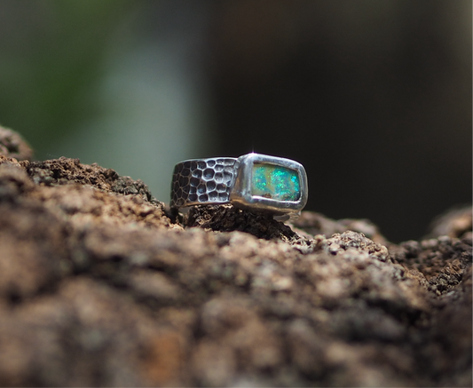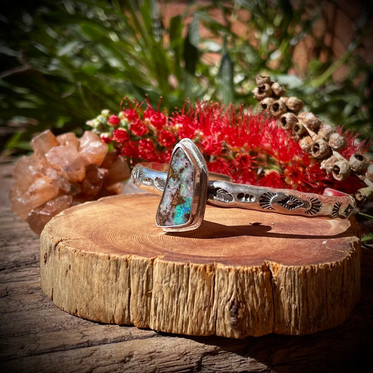 ~HAMMERED RING~ Blue Green Boulder opal (Size7.5, O1/2)