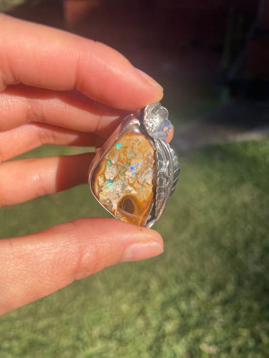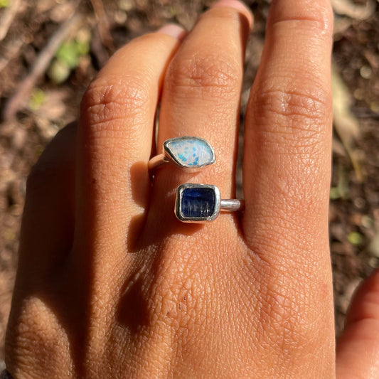 ~TWIN RING~ Boulder opal + Blue Kyanite/ size US8(UK P1/2)