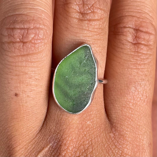 ~GREEN LEAF SEA GLASS RING~ Size US6.25(M1/2)