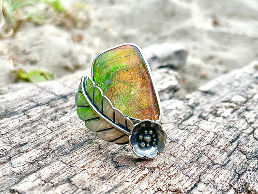 ~AMMOLITE FLOWER & LEAF~ Size US 6
